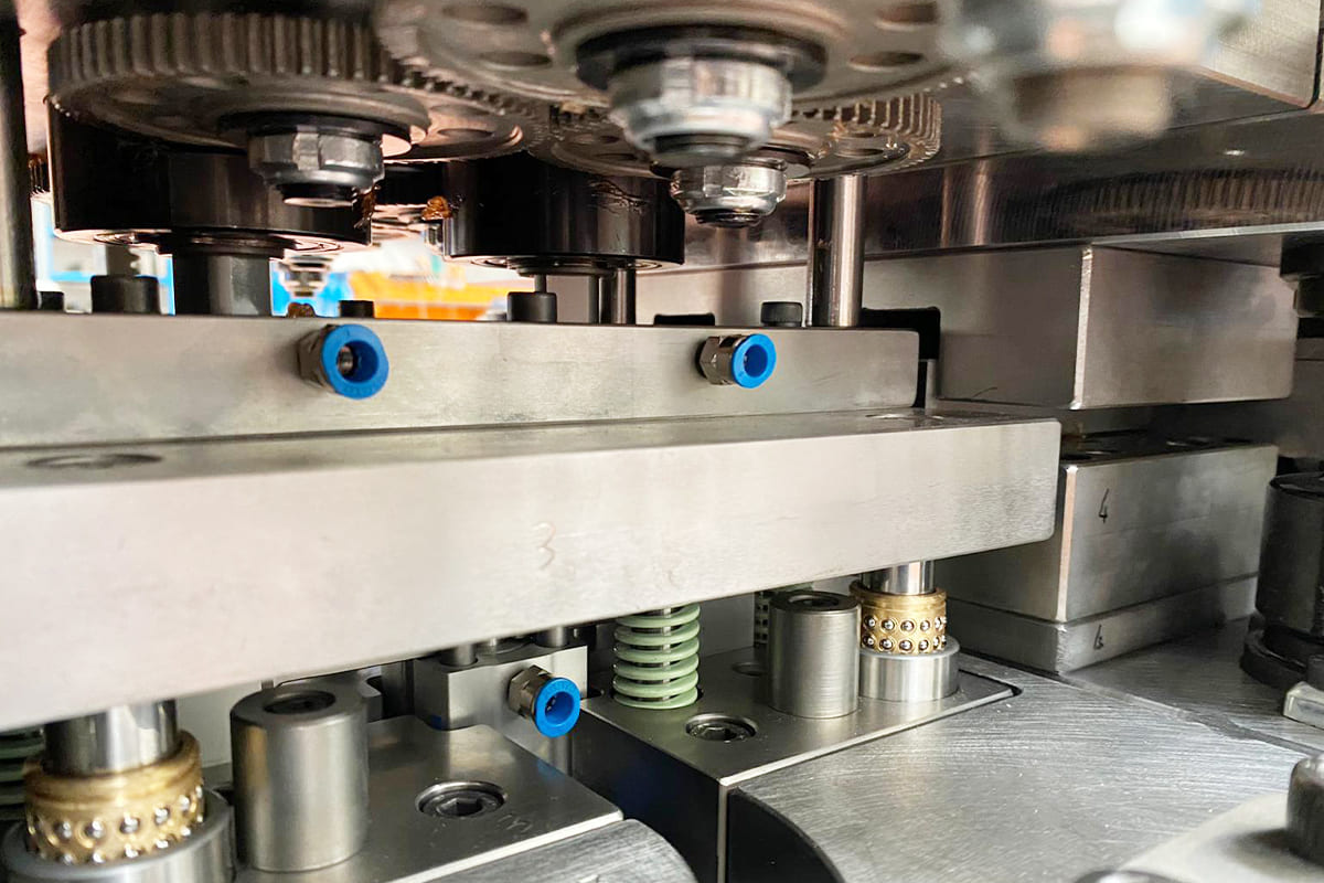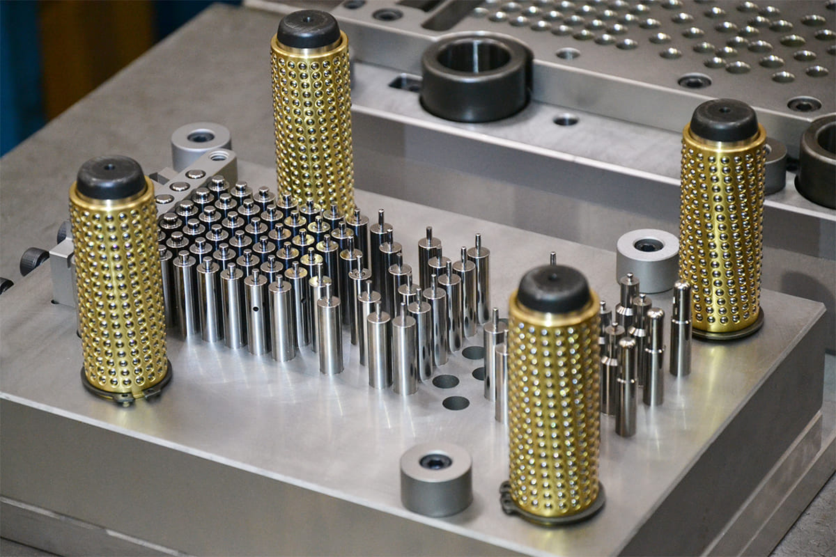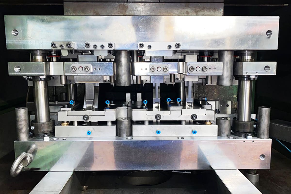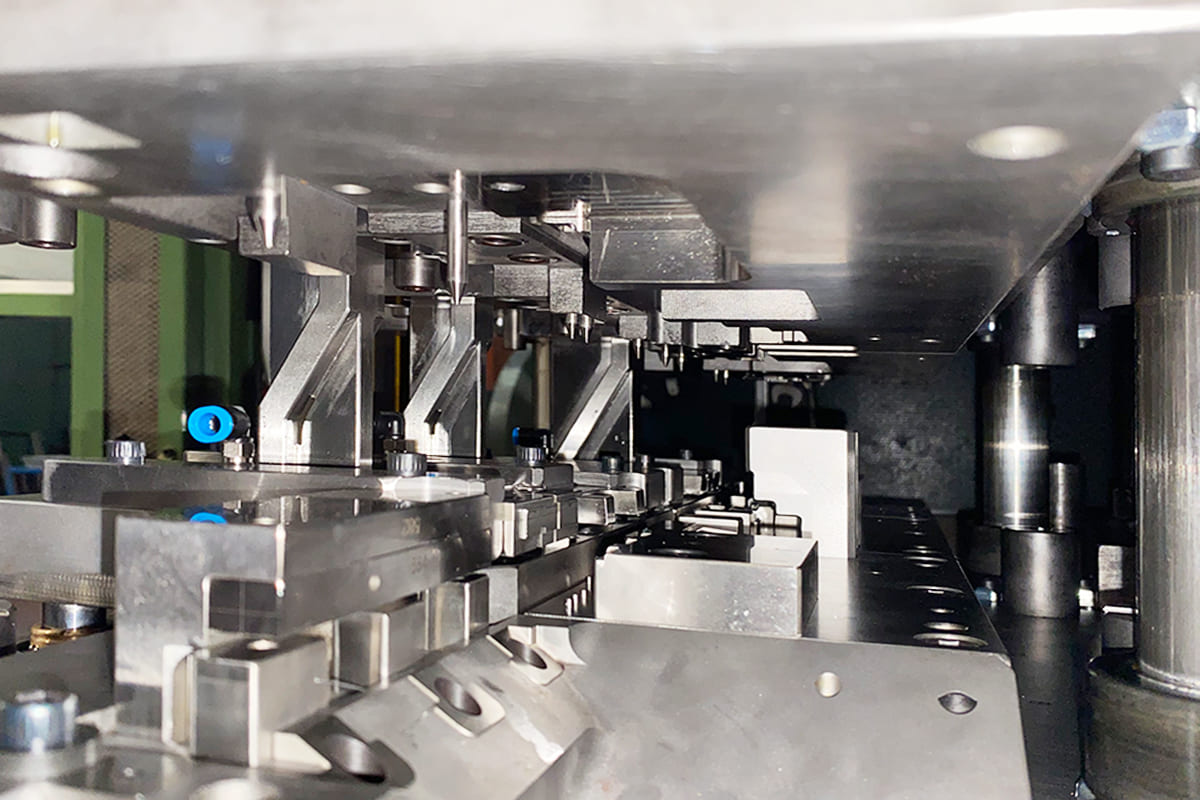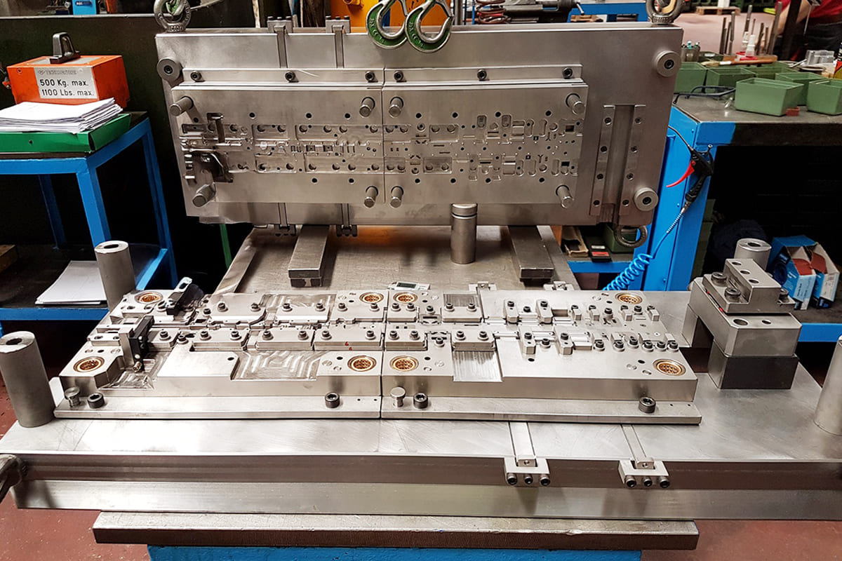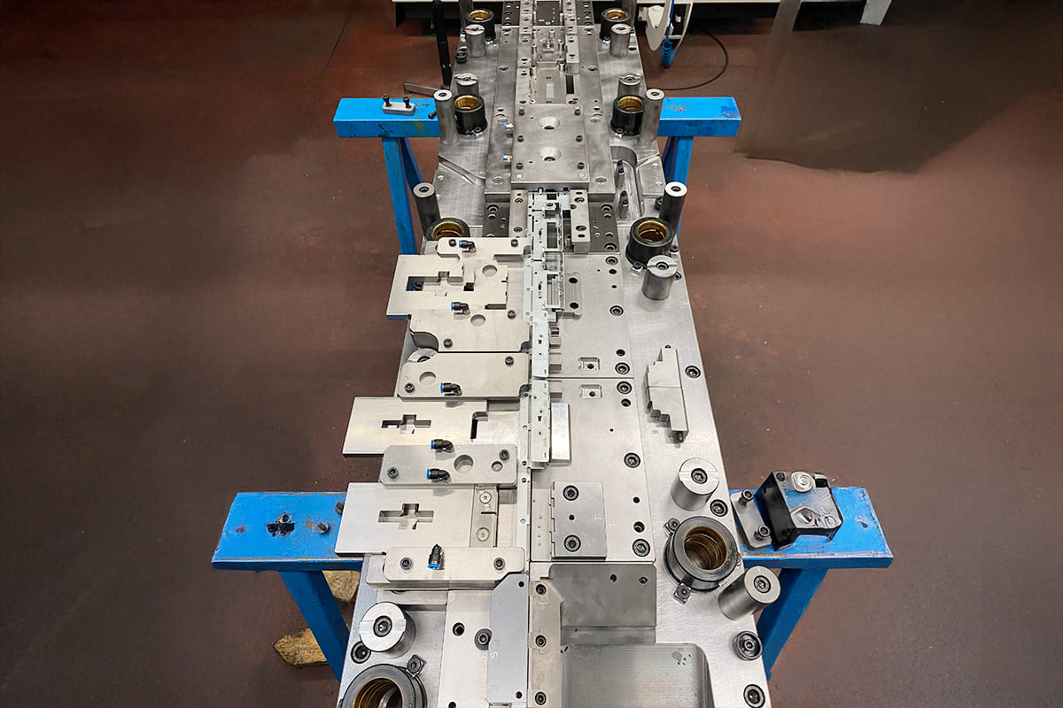 Gli stampi progressivi sono un’ottima soluzione per ovviare i costi della mano d’opera per le riprese manuali e per produrre medie/grandi quantità di pezzi in maniera automatica. Ne progettiamo e costruiamo di ogni genere, sia per pezzi semplici che per particolari complessi. Possiamo inoltre inserire lavorazioni speciali all’interno dello stampo come filettatrici, saldatrici e macchine di assemblaggio cosi da poter ottenere pezzi completi direttamente da nastro senza bisogno di eventuali riprese post-stampaggio risparmiando molti costi di produzione.